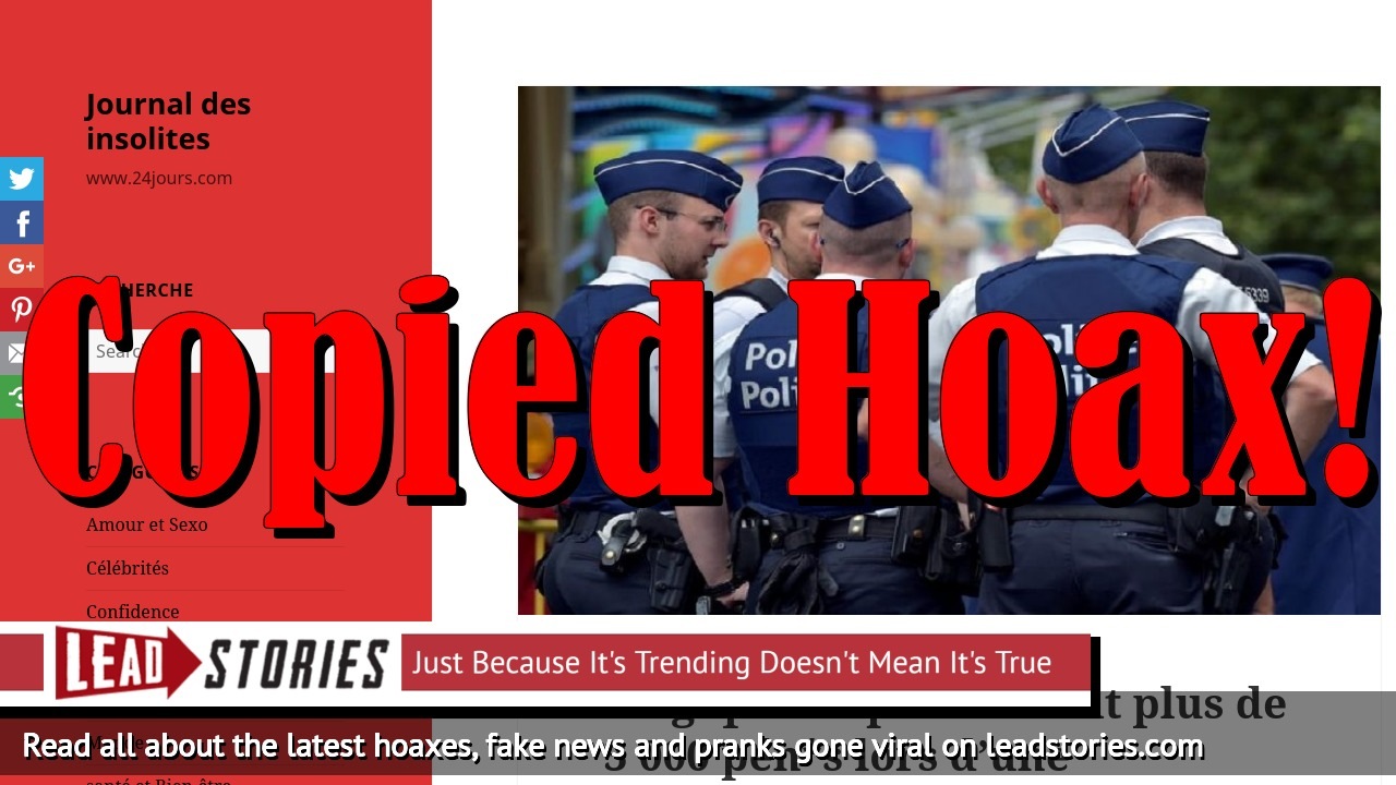 The photo used with the story does show real Belgian police officers but it was taken in Brussels in 2016: