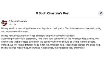 Disney World is removing all American flags from their parks. This is to create a more welcoming and inclusive environment.