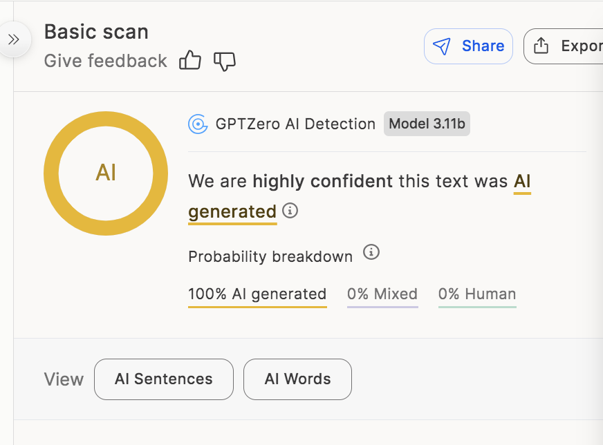 (Image source: Lead Stories screenshot of GPTZero.me report.)
