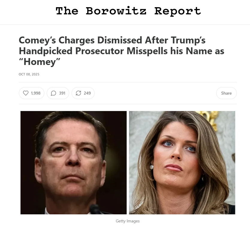 Did a federal judge in Virginia drop charges against former FBI Director James Comey because the prosecutor misspelled Comey's last name as "Homey"? No, that's not true: The rumor on social media originated from a satire website. As of October 10, 2025, the trial date was set for January 5, 2026; however, the former FBI Director's legal team stated that it would file a motion to dismiss the case on the grounds of selective prosecution.