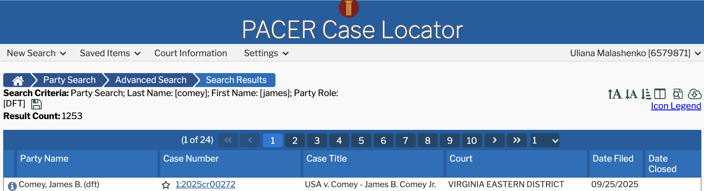 As of this writing, a docket report available via PACER (Public Access to Court Electronic Records) indicated that the case against Comey was still ongoing.