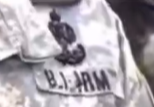 A real uniform would have "U.S. Army" above the left pocket. This uniform reads "B.I. Arm."