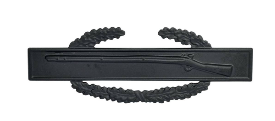 Just above that section are three medals, all unrecognizable as actual Army medals. The long rectangular medal is similar to a Combat Infantryman Badge (CIB), but with differences.