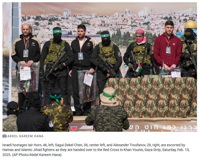(Image source: Lead Stories screenshot from usnews.com/news/world/articles/2025-02-14/hamas-is-set-to-free-3-more-israeli-hostages-after-dispute-threatened-to-reignite-war-in-gaza.)