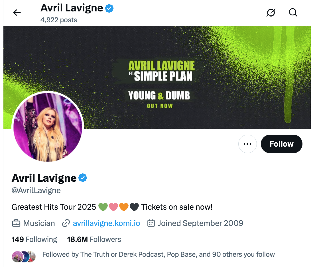 (Image Source: X account @AvrilLavigne screenshot taken by Lead Stories.)