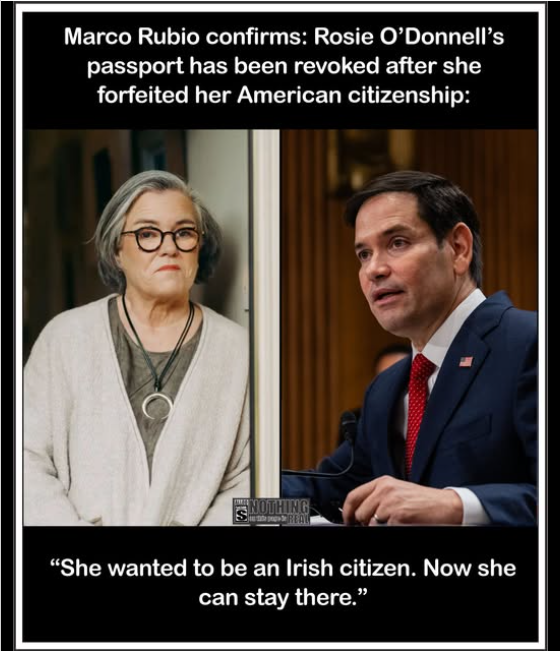 Marco Rubio confirms: Rosie O'Donnell's passport has been revoked after she forfeited her American citizenship: 'She wanted to be an Irish citizen. Now she can stay there.'