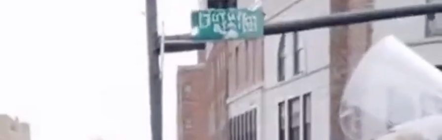A green street sign was written, as is common in generative-ai-produced images, in gibberish: