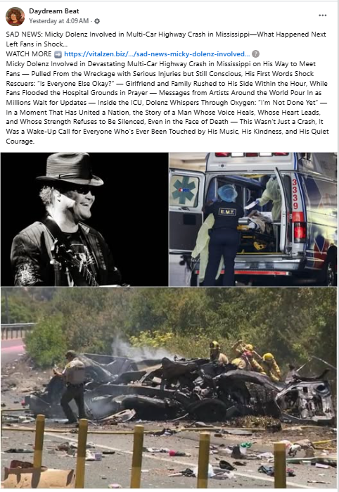 If you were curious enough to want to know more about Micky's Mississippi car crash, you might click on that blue link.