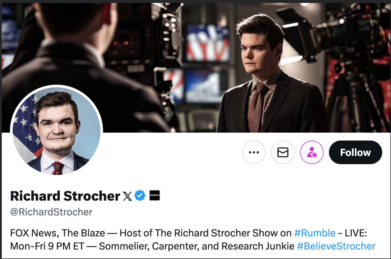 FOX News, The Blaze -- Host of The Richard Strocher Show on #Rumble - LIVE: Mon-Fri 9 PM ET -- Sommelier, Carpenter, and Research Junkie #BelieveStrocher
