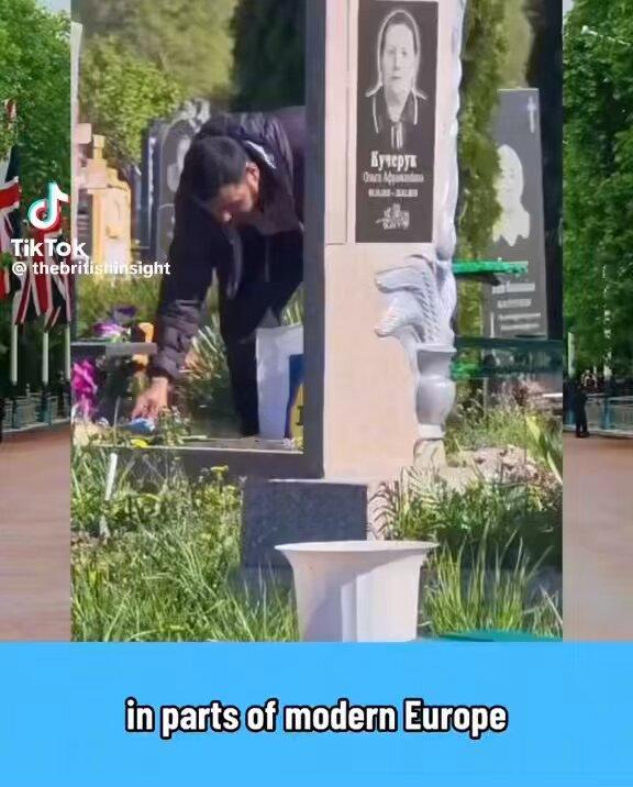 Does a video show illegal immigrants in the UK stealing from the dead by taking things from graves to sell? No, that's not true: The video was first posted by a TikTok account from Ukraine, on April 27, the day the Ukrainian and Eastern Orthodox Churches observe "Thomas Sunday" or "Provody." The specific observance of the tradition varies by region, but a common feature is for bags of sweets to be left on graves as a memorial with the understanding that they will be collected by someone -- children, the poor, or others.