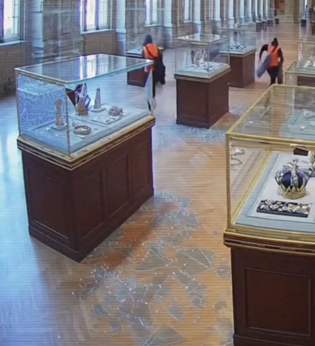 A press release (archived here) issued by the French Ministry of Culture offered details used to debunk this video: The thieves made their way to the Apollo Gallery, where crown jewels were on display, and proceeded to steal eight objects; one more item was later recovered by the authorities.