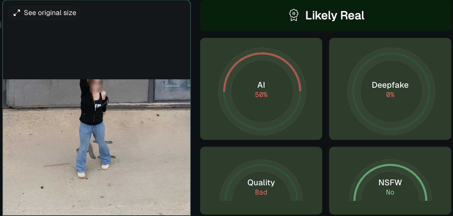 When Lead Stories ran the image through online AI detectors recommended by various journalistic investigative communities, they found slight evidence of generative AI. Yet, the overall results were not definitive enough to declare the image a fake.