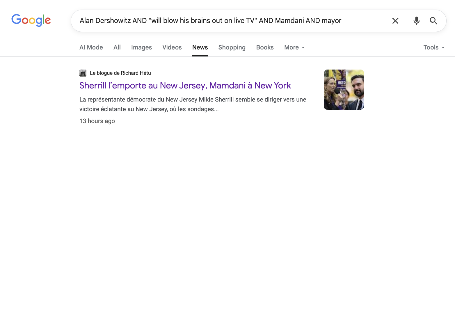 A Google search across the New York Post website did not produce any exact matches for the purported Dershowitz quote mentioning Mamdani: