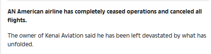 Reading the body of the story, however, reveals the story is about "AN American airline" named Kenai Aviation that was closing.