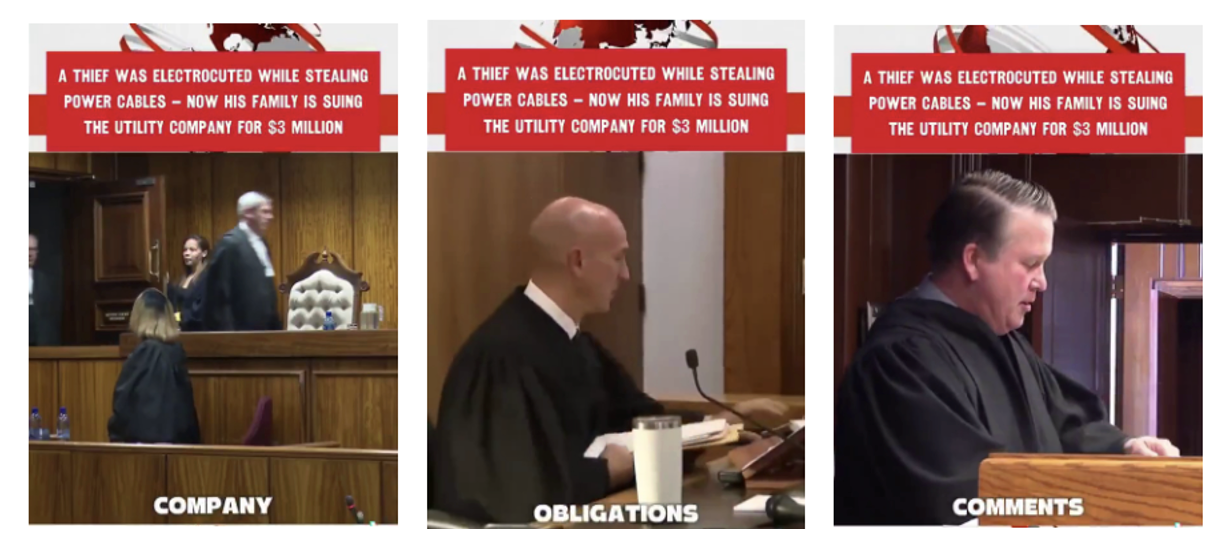 F. A. F. O. Ends in electrocution of thief. Family sues Company for $3M. Judge says NO and that it was Victim's fault. He died while trying to steal electric copper wire.
