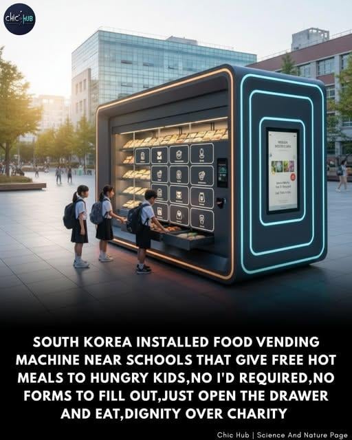 South Korea has found a powerfully simple way to fight childhood hunger. Instead of endless policy debates, the nation introduced machines that look like ordinary vending units but dispense something far more meaningful than snacks. No paperwork, no judgment, no questions--just hot, nourishing meals available to any child who needs one, quietly and with dignity.