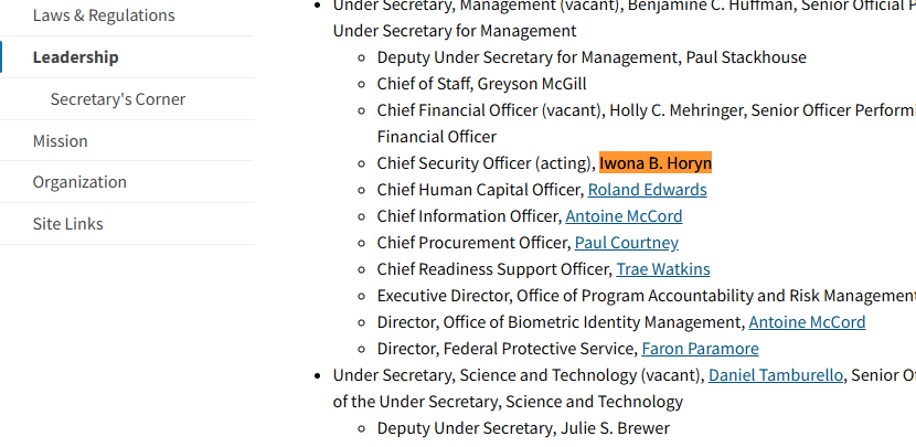Is Iwona B. Horyn the real name of the acting chief security officer at the U.S. Department of Homeland Security? Yes, that's true: Some social media users have questioned if this was a joke, but Horyn's name is listed on several pages of the DHS official website. There is a LinkedIn profile with the same information and photograph used in a viral post. A public information search has also confirmed Horyn is a real person.