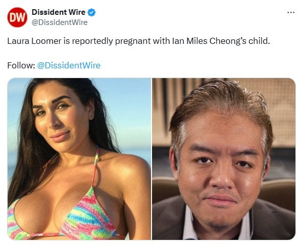 Laura Loomer is reportedly pregnant with Ian Miles Cheong's child.