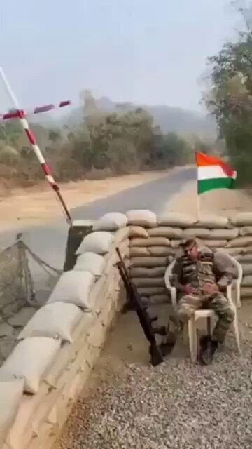 Did a monkey fire an Indian guard's rifle while he was taking a nap at a checkpoint? No, that's not true: There are many clues that the video is AI-generated, notably the distortions in key positions of the video indicating watermarks from the AI video generating app have been removed. Other glitches can be seen in the Indian flag, the gun, and the chair where the soldier is napping.