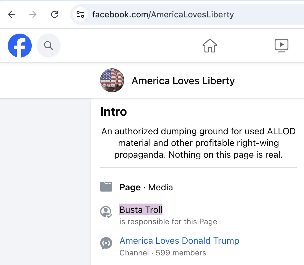 The page further disclosed that it's affiliated with "Busta Troll," a self-professed liberal troll Christopher Blair from Maine:
