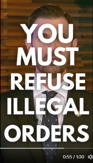 While the video by the members of Congress does not address how a service member can determine if an order is illegal, their message is not contrary to what all new recruits are taught in basic training.