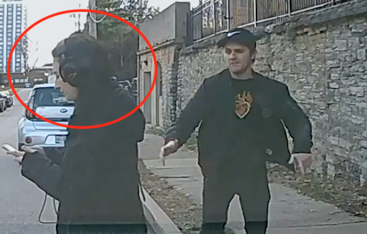 And the woman later in the video posted on Instagram, without headphones by a car with the long yellow license plate: