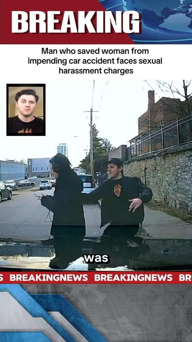 A man saved a woman who was on the verge of being hit by a car, but was charged with sexual harassment because he made inappropriate contact with her.