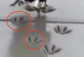 The prints didn't even match the appearance of the birds' feet. As seen in the screenshot below, the eagles have three toes pointed forward and one looking backward, but prints show four -- or three, or five -- toes next to each other: