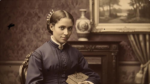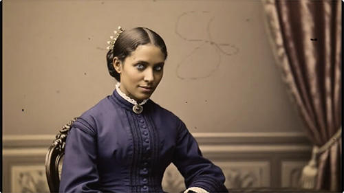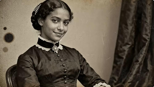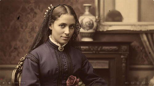 The videos feature still AI-generated images made to look like vintage photos with effects of wear and age added to them. Some of these pictures are oddly similar but different -- where the clothing, jewelry, hair pieces, pose, and furnishings are almost unchanged, and the woman's face was slightly different. Although most of the images do not have an AI watermark, it is clear that they were derived from the same prompts.