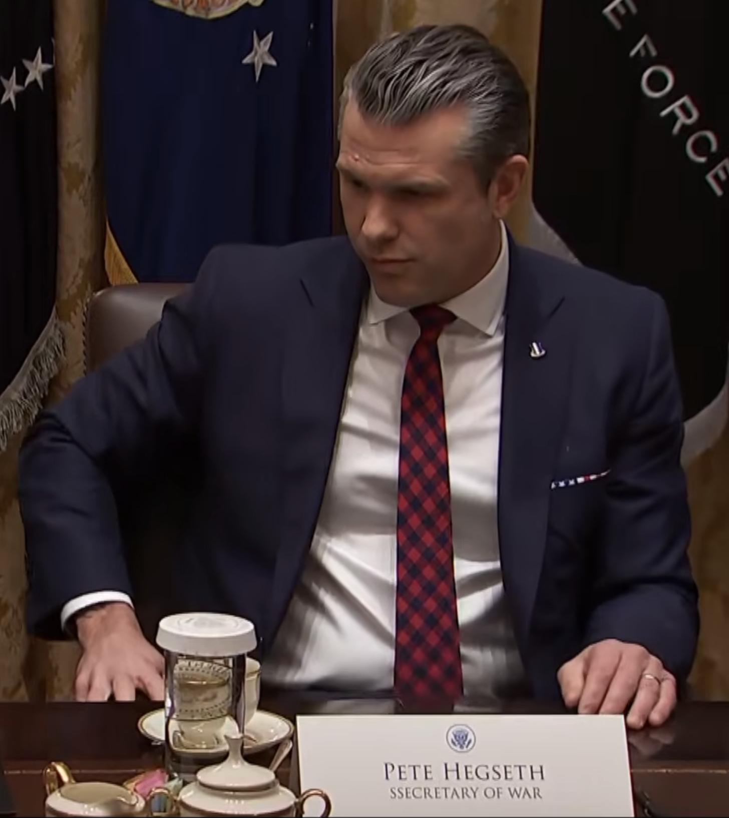 Was Pete Hegseth's nameplate at the December 2, 2025, cabinet meeting misspell his title as "SSECRETARY OF WAR"? Yes, that's true: Photos and video recorded by several media agencies and on the White House website confirmed that an image showing that spelling is real.