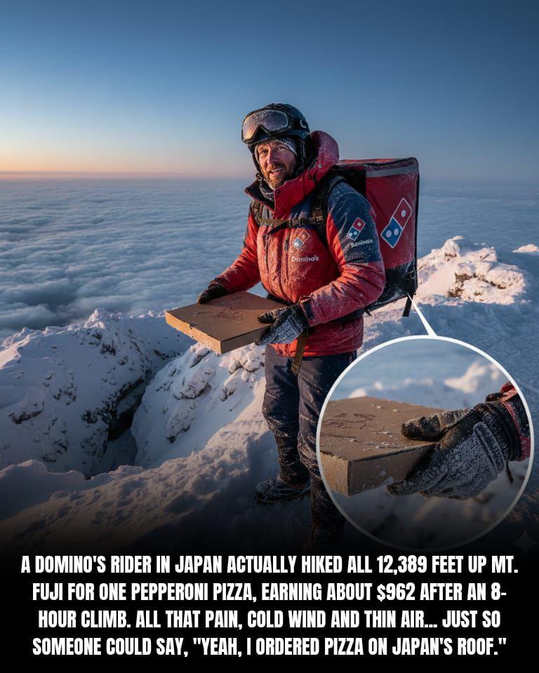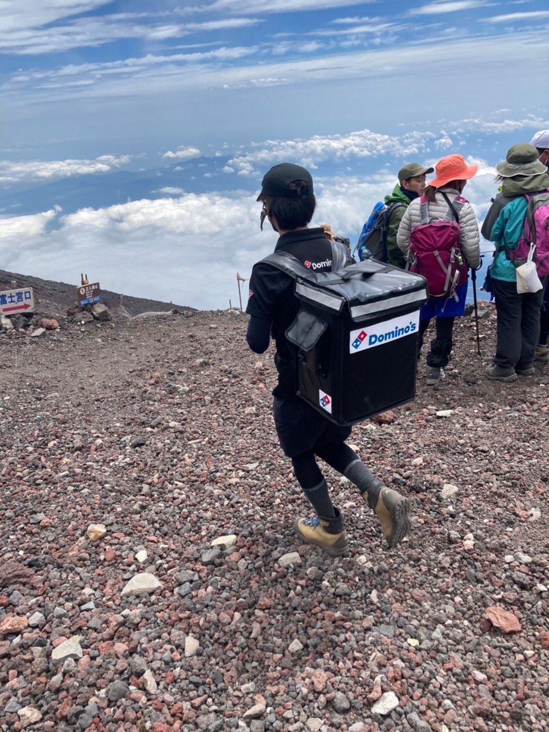 Hikers were shocked to see a pizza delivery worker during their climb up Mount Fuji.