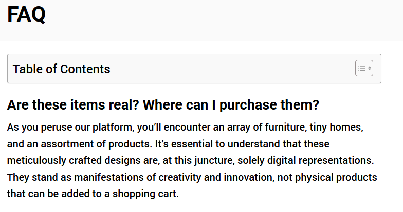 As you peruse our platform, you'll encounter an array of furniture, tiny homes, and an assortment of products. It's essential to understand that these meticulously crafted designs are, at this juncture, solely digital representations. They stand as manifestations of creativity and innovation, not physical products that can be added to a shopping cart.