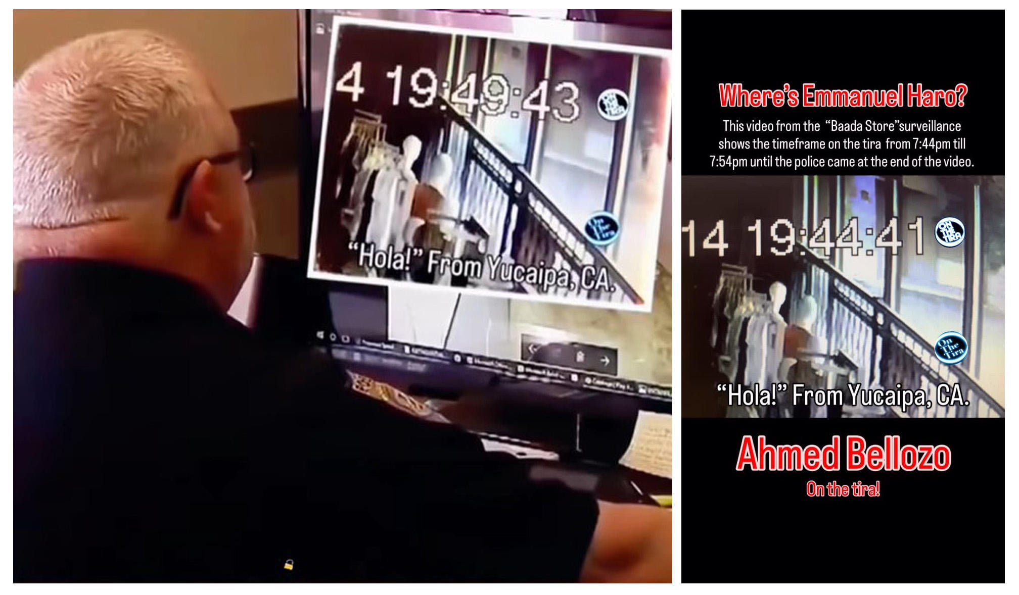At 00:22:00 a clip shows a uniformed man viewing security footage (below left). This clip appears to be a sloppily edited fake -- the security footage carrying "On The Tiara" watermarks has been superimposed onto the computer screen. Lead Stories located that watermarked security footage, posted on Aug. 20, 2025 on the Instagram channel of @onthetira (below right). The footage from a Baada clothing store in Yucaipa, CA played a role in the investigation of the murder of seven-month-old Emmanuel Haro. Initially the parents falsely reported their son had been kidnapped. On Nov. 3, 2025 Jake Haro was sentenced (archived here) to 25 years to life after he pled guilty to the baby's murder. Rebecca Haro is also facing charges of murder and of filing a false police report. A felony settlement conference is scheduled (archived here) for Jan. 21, 2026 in Riverside, CA. This has nothing to do with a man escaping from an underground organ harvesting operation.