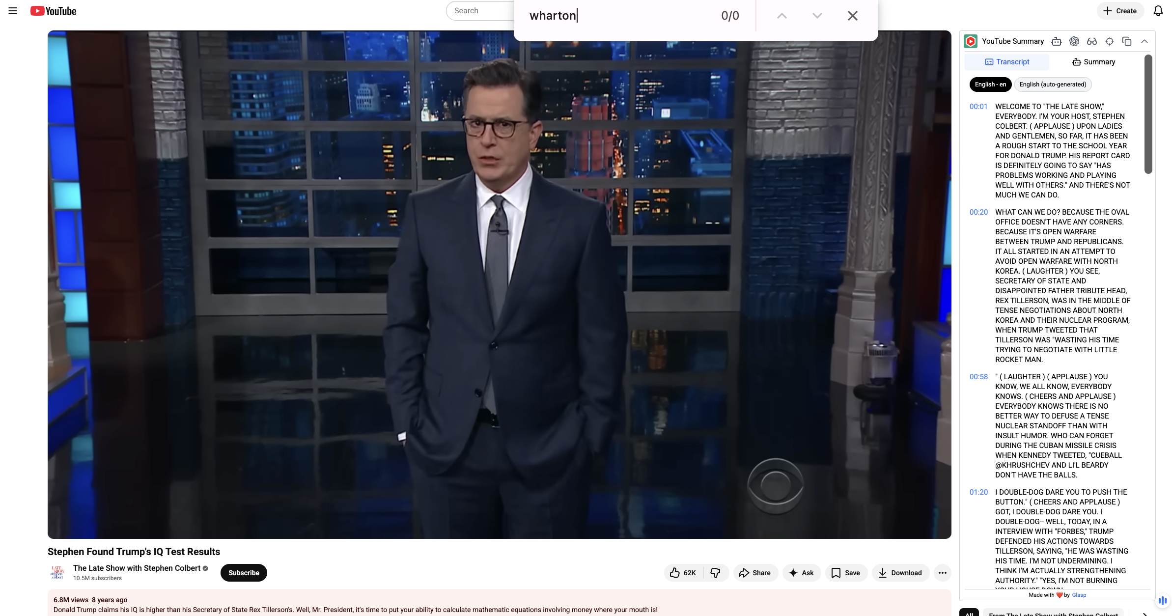 At the 2:33 mark, the clip included what appeared to be a video quotation from The Late Show with Stephen Colbert: