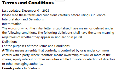 The text includes a link to an article (archived here) on a website that is also published from Vietnam, according to the website's Terms and Conditions page (archived here).