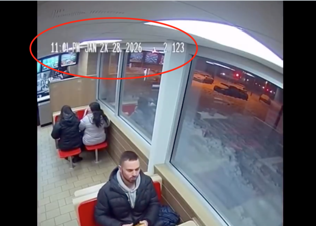 There are several telltale signs of AI generation in the video. The timestamp is garbled, with a "2x" appearing in the date, as this screenshot shows (Red circle added by Lead Stories):