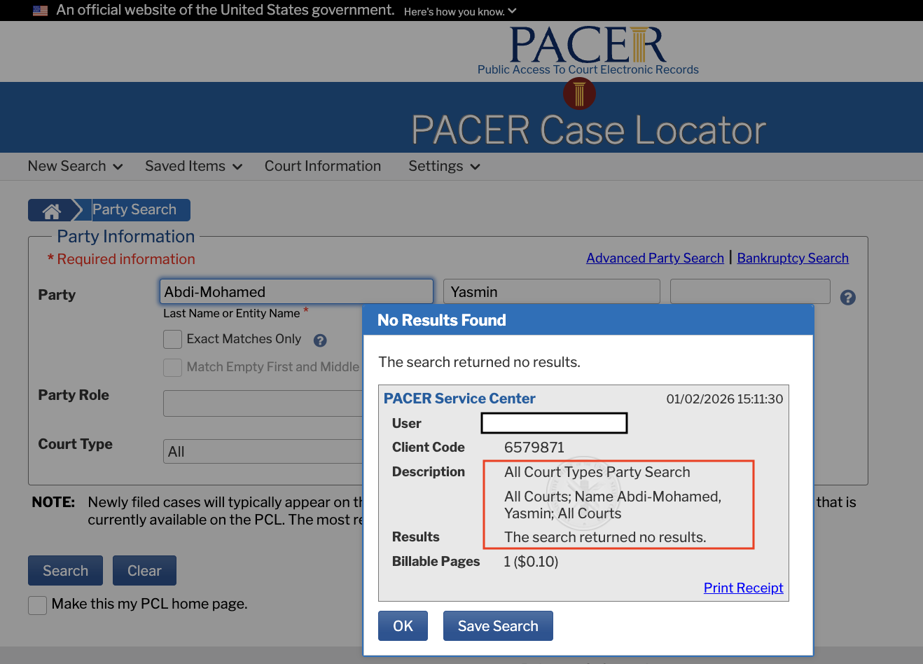 (Image source: Lead Stories screenshot of pacer.gov)