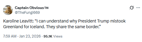 Karoline Leavitt: 'I can understand why President Trump mistook Greenland for Iceland. They share the same border.'
