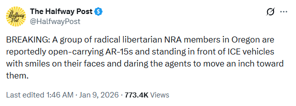 The X post (archived here) was published by The Halfway Post on January 9, 2026 and read: