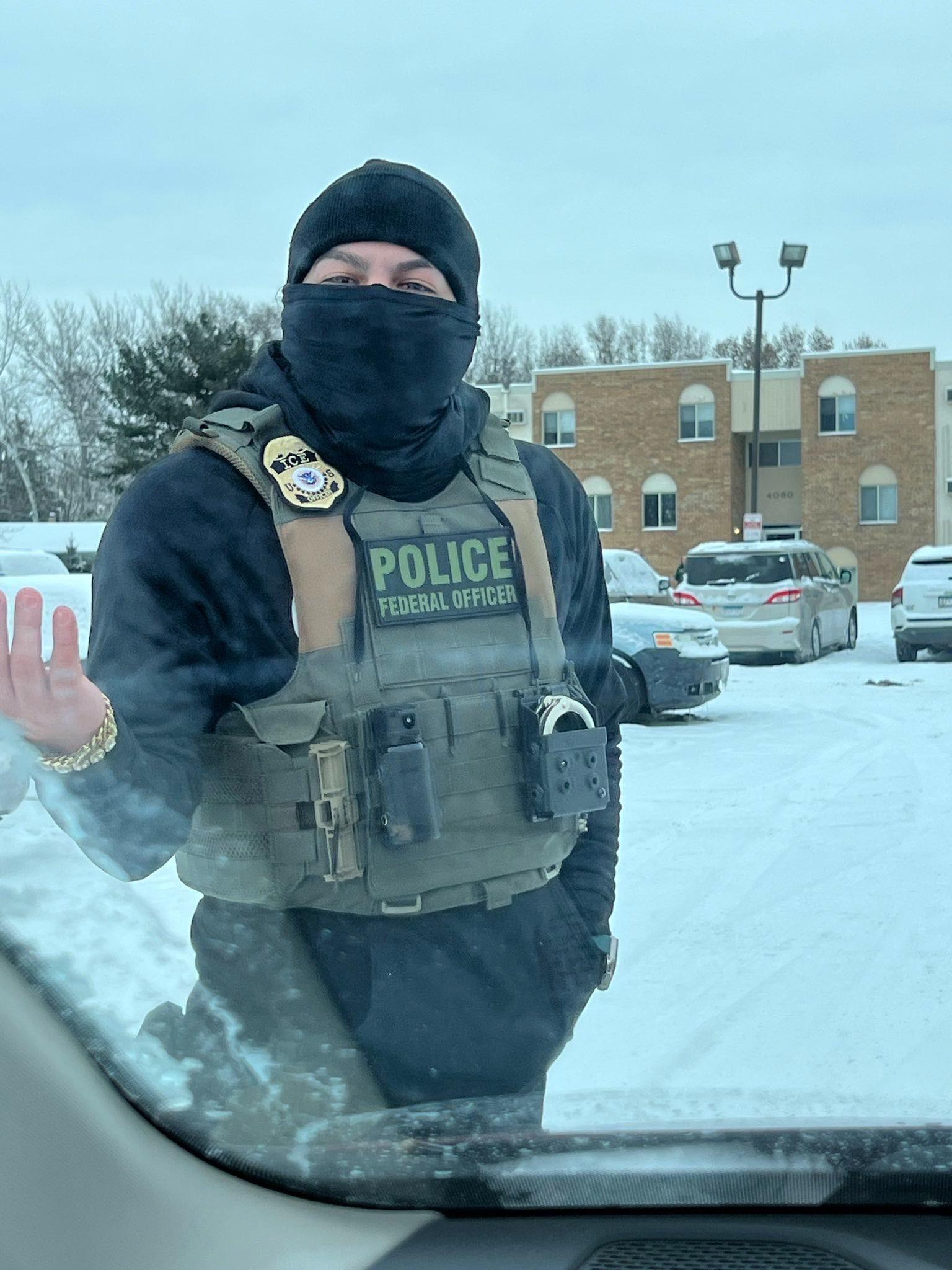 ICE agents seen near a vehicle in Oakdale, Minnesota earlier today.