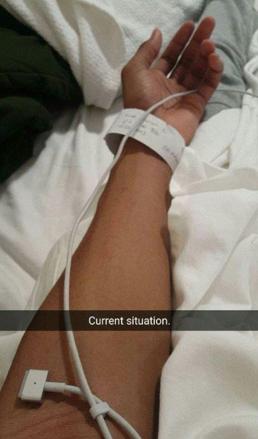 'I'm emailing these pics to my chem prof bc I had a nosebleed & had to be hospitalized & can't take this midterm Wed, [sic]' he wrote on Twitter.