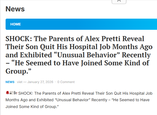 Did the parents of Alex Pretti, the ICU nurse shot to death by ICE agents in Minneapolis, say their son quit his hospital job months earlier and showed "unusual behavior"? No, that's not true: A statement released by Pretti's parents referenced his work as an ICU nurse at a Veterans Administration hospital, but it did not say that he had quit or that his recent behavior was unusual. The website making the claim is associated with a spam factory based in Vietnam that uses AI tools to target Americans and Europeans with fake clickbait.