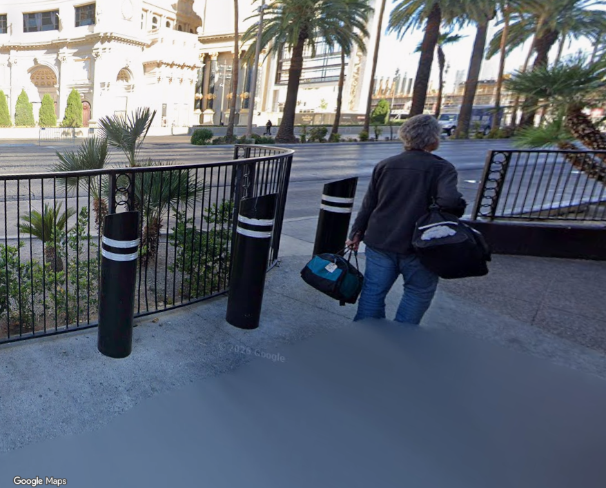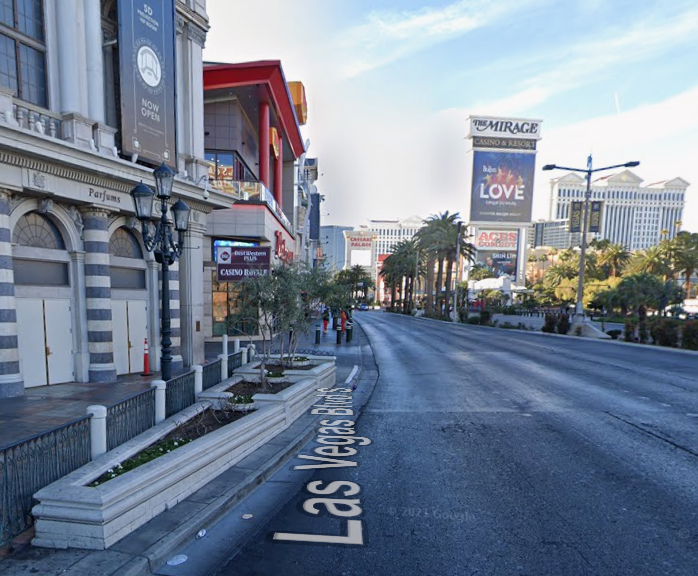 The Mirage Casino was closed in July 2024 to make way for construction of a new hotel, just weeks after this video was posted in June 2024. The Google Street View image of 3377 Las Vegas Boulevard (archived here) from January 2021 shows the location where the man was standing when the June 2024 video was recorded.