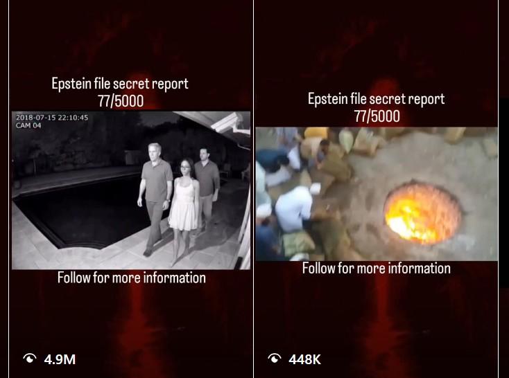 The Instagram account @epstein.insider (archived here) has not even kept up with its own fake numbering system, and has published two different videos numbered "77/5000" (pictured below).
