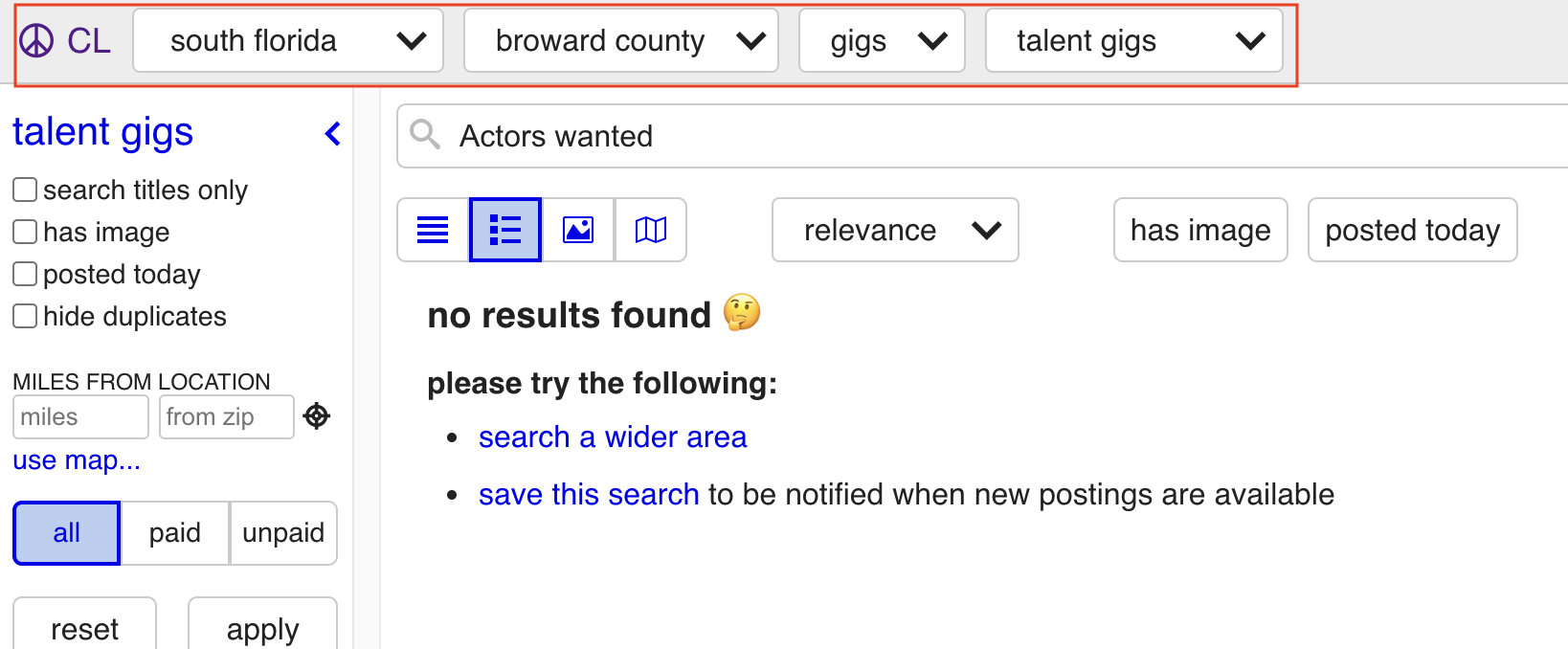 The screenshot purports to show an official Craigslist line of text in blue in the upper section of the image, showing the path to a posting. If the ad were real, that path still could have been seen in the same gig section where the supposed post was published. However, Lead Stories could only find that format in other sections of the website -- for example, here (archived here):