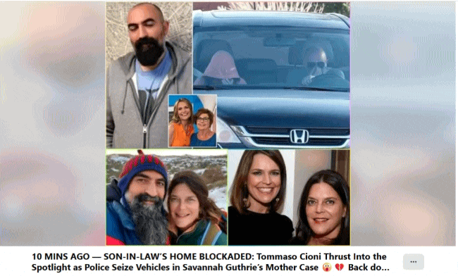 10 MINS AGO -- SON-IN-LAW'S HOME BLOCKADED: Tommaso Cioni Thrust Into the Spotlight as Police Seize Vehicles in Savannah Guthrie's Mother Case 😮💔
