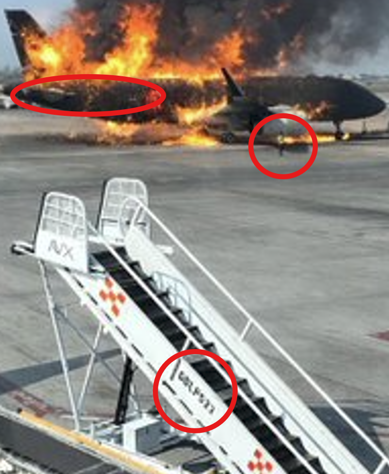 Lead Stories found several characteristics in the image that point to it being AI-generated. These include unrecognizable language on the passenger boarding stairs, a person standing casually in close proximity to the fire, and inconsistent windows in the plane. Those are common problems, with AI-tools generating made-up letters on common signage and rendering aircraft windows unlike any seen on aircraft currently in use. The person standing under the wings, where fuel is typically stored, and within a few feet of the burning aircraft is also the kind of illogical addition for which generative AI is known. Even if the heat of the inferno did not incinerate that person, it's unlikely they would stand there watching.