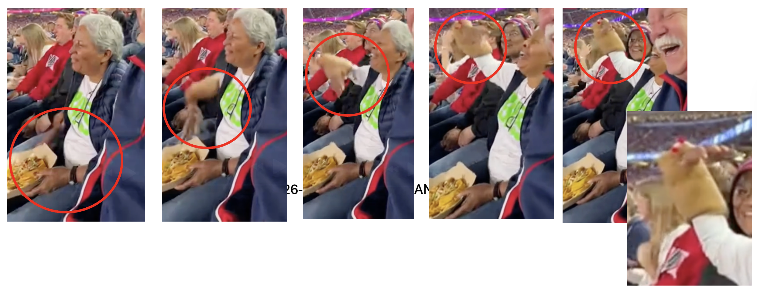 The 1-minute 30-second clip purported to capture people of diverse backgrounds at a stadium. Many of them look into the camera, either appearing confused, laughing, or visibly disapproving of what they see. That included a young man mumbling, "Man, you are... better than this" (at the 01:11 mark) and a teenager saying, "That's gross" (at the 1:22 mark).