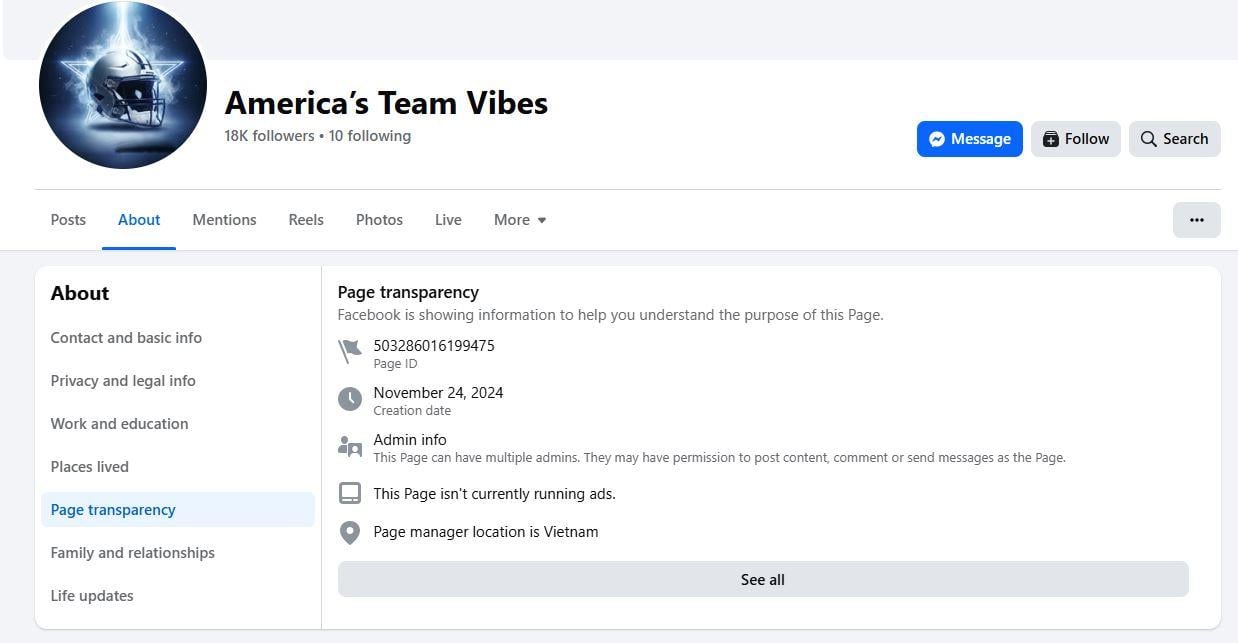 On Oct. 28, 2025 the Facebook page America's Team Vibes made a post (archived here) captioned: