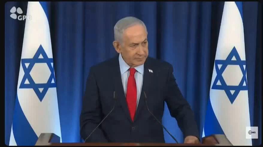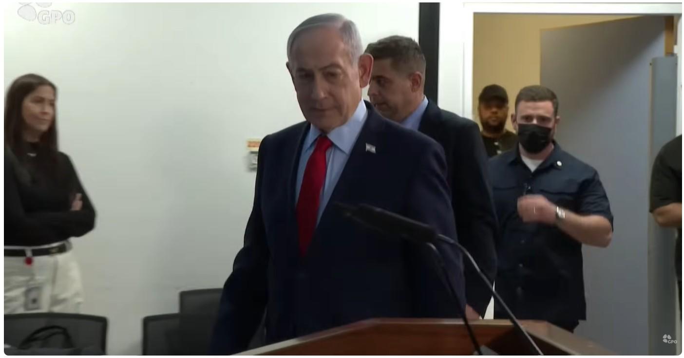 The short clip on X was taken from the 24-minute 27-second mark in the YouTube broadcast. At that moment, Netanyahu enumerates the first two of three points: